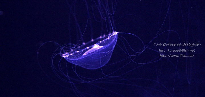 深い紺色の世界を進んでいく炎の流れ星。 インドネシアンシーネットル。 水槽の中の白い点が遠くの銀河で 無限に深い空間をゆったりと進んで行きま...